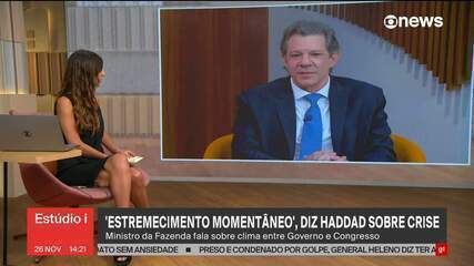 Haddad também afirmou em entrevista ao Estúdio i nesta quarta-feira (26) que a cúpula do Congresso não está rompida com o governo após ausência no evento de isenção do IR dos presidentes da Câmara dos Deputados, Hugo Motta (Republicanos-PB), e do Senado, Davi Alcolumbre (União-AP).