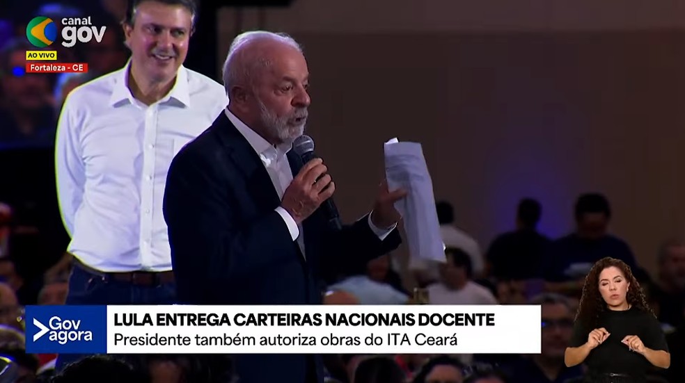 Lula participou da cerimônia de entrega das Carteiras Nacionais Docente do Brasil e dos equipamentos do Programa Mais Professores, no Ceará. Na ocasião, Lula também autorizou obras do ITA Ceará.