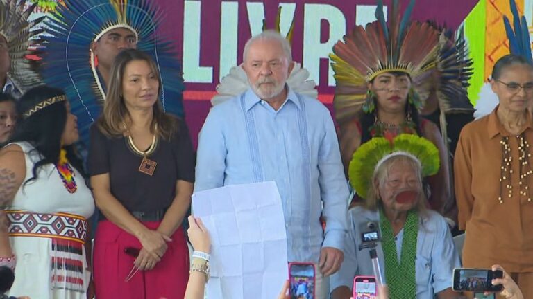 Lula levanta faixa contra marco temporal e diz que vai demarcar ‘maior número possível de terras indígenas’