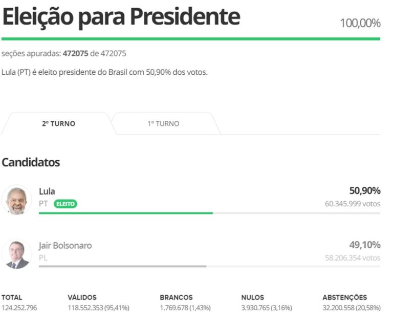 Apuração dos votos: 100% das urnas são totalizadas