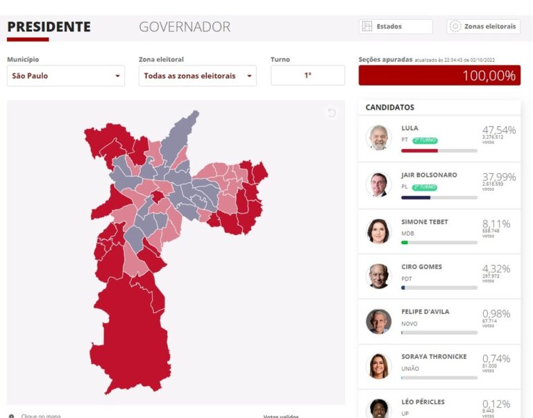Lula tem mais da metade dos votos válidos em 11 estados; Bolsonaro, em 10 estados e no DF